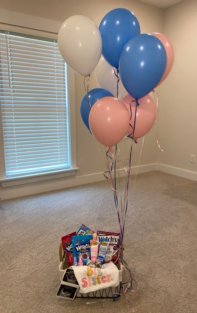 We filled a basket full of pink and blue things, a big sister t-shirt, a sonogram picture, a sister book and we would get pink and blue balloons blown up – three different times, in fact, because I would tell James that we would tell Emeri that she was going to be a big sister on a specific day and then I would back out … The balloons would deflate and then we would plan a day to tell her again, we’d get balloons blown up and tie them to the basket and then once more I would back out. We were beyond excited, but I’m not the biggest fan of change and I wanted the surprise to be so special for our girl, so I held off as long as possible until I just couldn’t anymore. August 13, 2023, was a special day – The balloons were still filled with air, and we told Emeri Ann that her prayers had been answered … She was going to be a big sister. We opened the door to an empty room filled with a full basket and pink and blue balloons – The excitement in her voice is something that will never be forgotten. We then shared the news with all of our favorite people and have videos that we look back on now to help us remember the journey – Oh, what a day filled with the sweetest memories … ❤